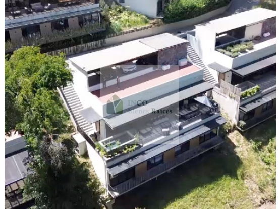 DISTRIBUCIÓN: La casa es prácticamente nueva, con acabados y mobiliario de alta calidad; construida en 3 niveles, y todos los niveles con un frente a lo largo hacia el frente de bosque y afluente, comenzando por el nivel de acceso vehicular y en 2 plantas inferiores que se integran a la topografía del terreno. En la planta de calle se encuentra la escalinata para acceder a la casa, una bodega y el área de estacionamiento con capacidad para 3 vehículos grandes.En el siguiente nivel accedemos en forma a la casa, directamente al área social que se extiende para disfrutar de la vista del entorno, con espacios amplísimos que se integran gracias sus ventanales corredizos con una terraza techada, con piscina de inmersión de agua caliente, sala, comedor y área de asador, donde se disfruta el fabuloso entorno boscoso y el murmullo del agua corriendo; entre la sala y el comedor se encuentra una chimenea de gas que calienta todo el interior y la terraza cuenta con calentadores eléctricos. La cocina se encuentro en el extremo de la planta social y a través de la misma se accede a la despensa, área de lavado y cuarto de servicio con baño completo.